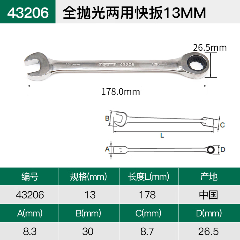 世达 SATA 13号棘轮扳手 单位:把(货期15天)