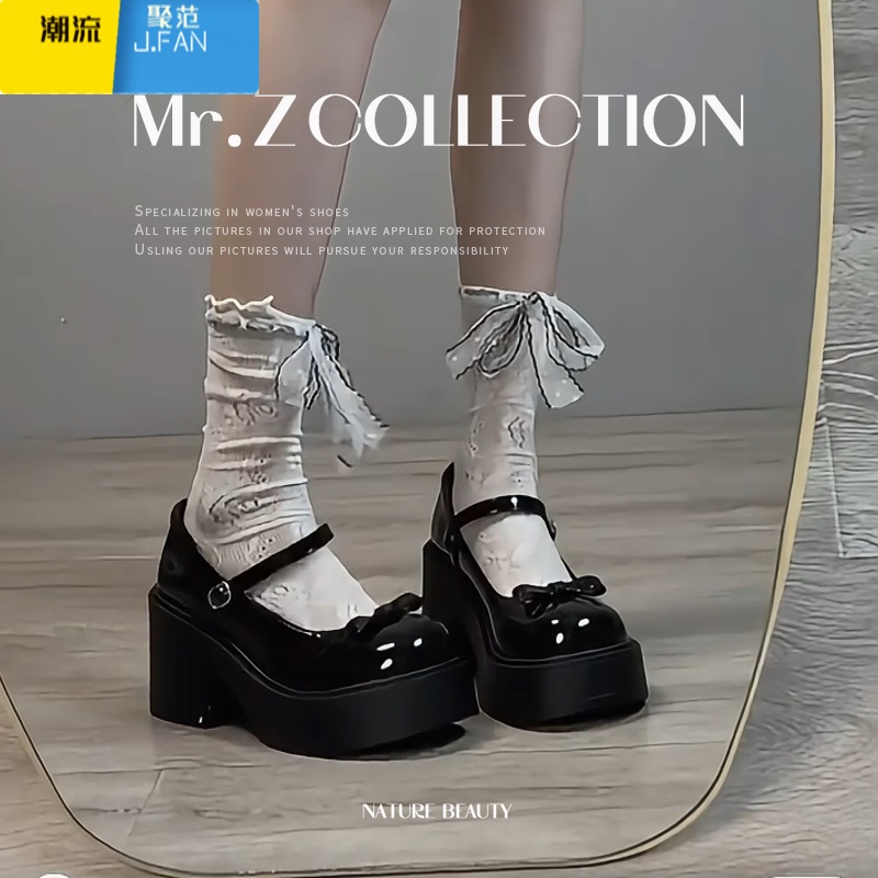 聚范黑色百搭法式厚底高跟玛丽珍小皮鞋女2024新款夏季配裙子浅口单鞋 37偏小一码 黑色升级版83买家选择