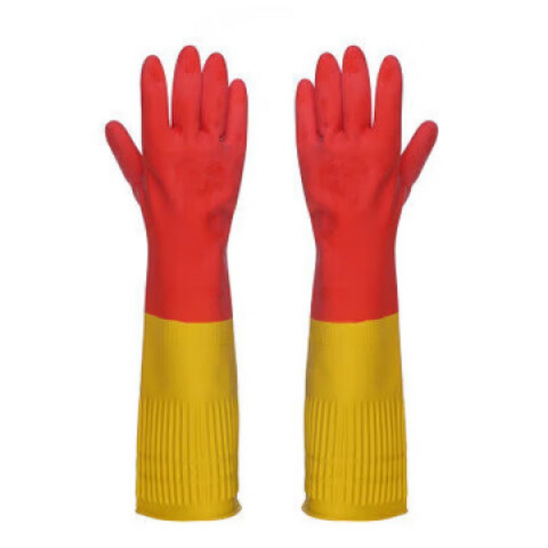 天然乳胶双色手套加长加厚橡胶家务防水超长耐油防污手套 红黄
