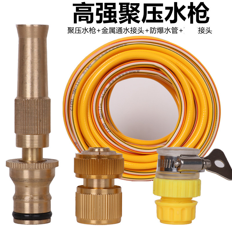 高压洗车水枪铜家用喷枪浇花工具增压水龙头洗车神器水管喷水电动 20米水管+铜直喷水枪+金属通水+接头 默认