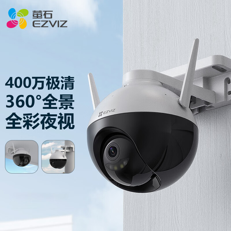 萤石(EZVIZ)C8W 4mm 400万 无线WiFi室外双云台360°摄像头 人形检测 H.265编码