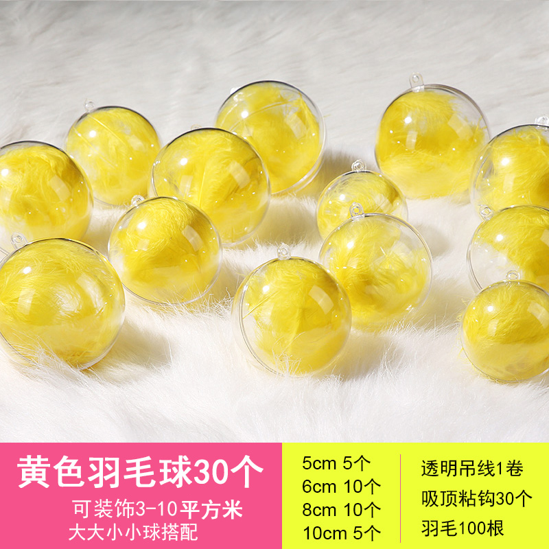 亚克力球透明圆球橱窗挂饰 (羽毛)黄色套餐-30个球