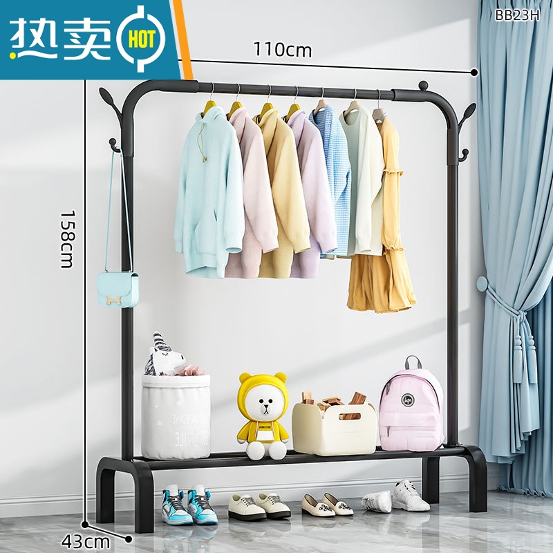 XIANCAI简易晾衣架落地折叠家用阳台晾衣服架子卧室立式晾衣杆宿舍挂衣架 110cm黑|双树杈钩 1个