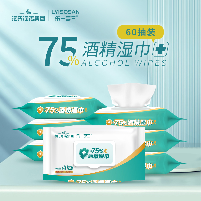 海氏海诺 75酒精湿巾(60片装) 免洗手家用大包装皮肤清洁学生成人60抽