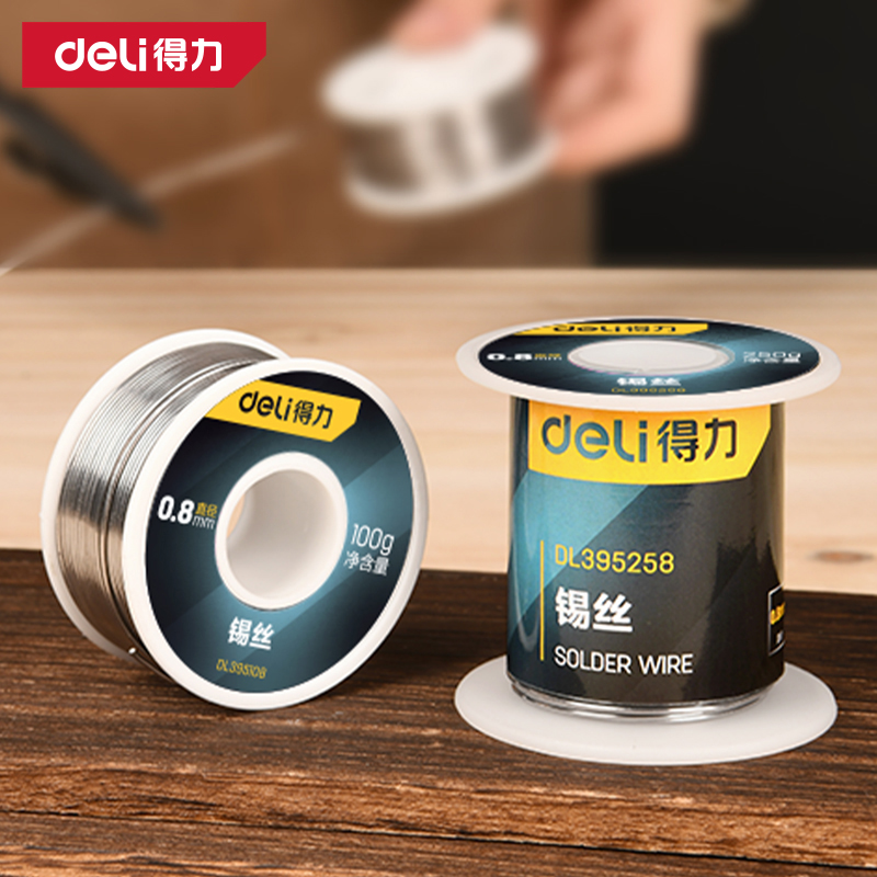 自营 得力(deli)无铅锡丝63%含锡量(银) 0.8mm 100g DL395108