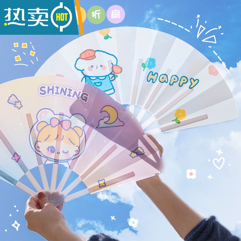 XIANCAI学生折扇女夏季折叠扇卡通小折叠扇子幼儿园小孩儿童节毕业小礼物 卡通七折扇—5把