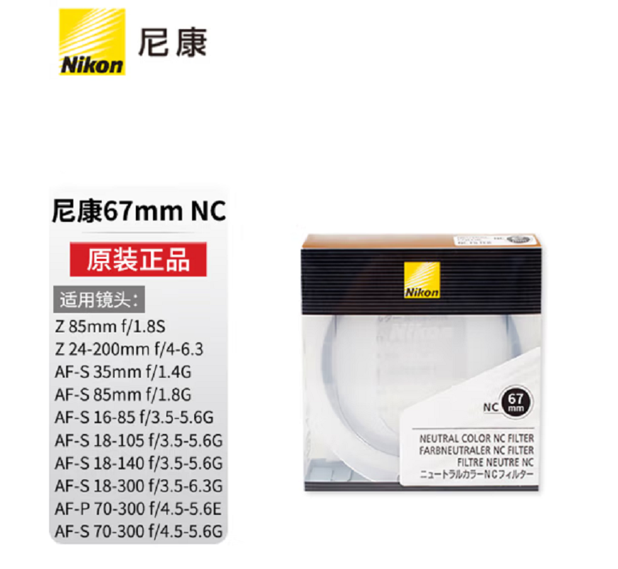 自营 尼康(Nikon) UV镜原装NC滤镜单反微单UV镜头 67mm适用尼康18-140 18-105