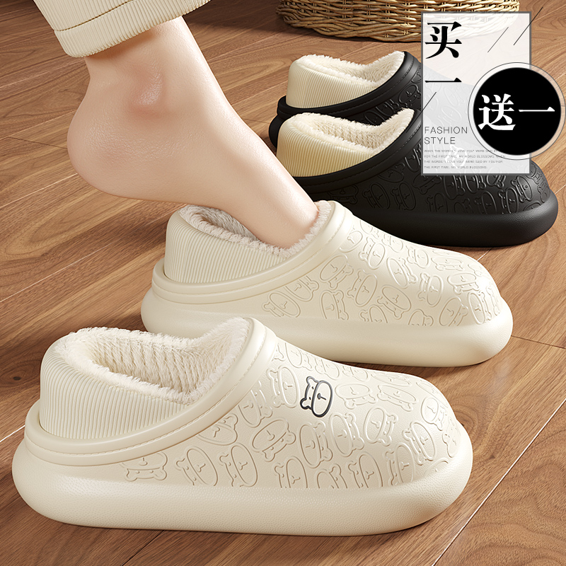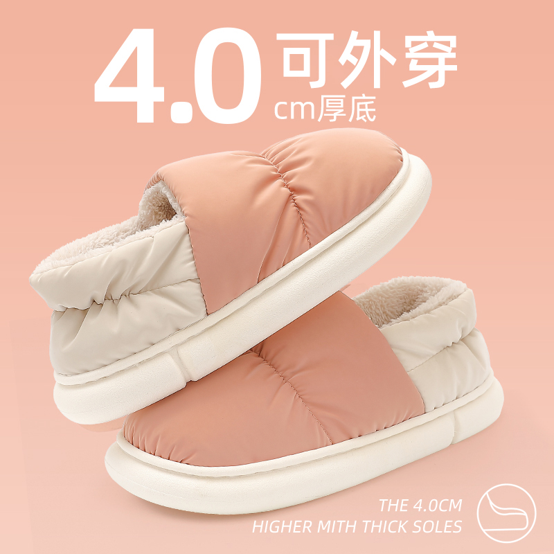 新款棉拖鞋女士包跟秋冬季防水室内家居防滑月子加绒保暖外穿 白色【羽绒布款】 36-37【适合35-36脚穿】