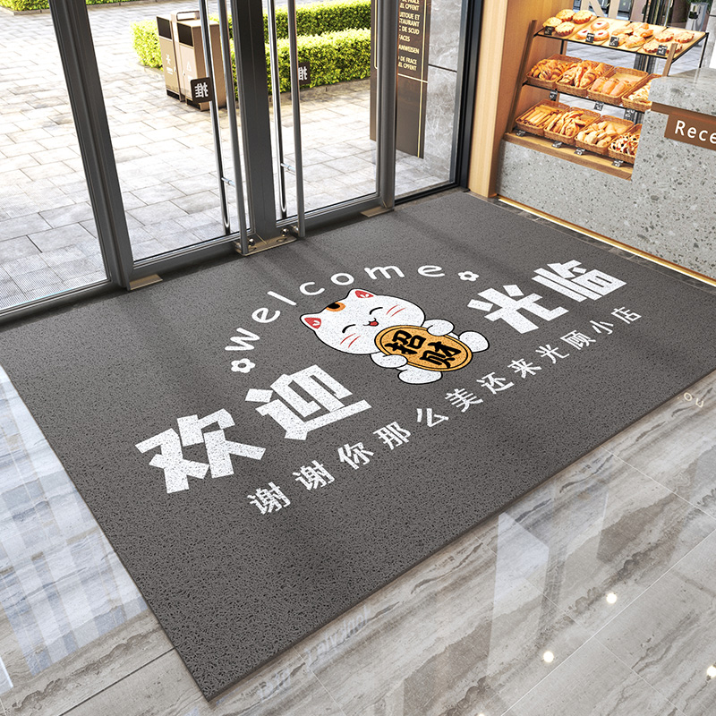 欢迎光临门垫商用迎宾进门地垫公司酒店门口丝圈脚垫入户防滑地毯 60CM*90CM【高弹丝圈】【蹭土除尘】 财源滚滚-欢迎光临-灰