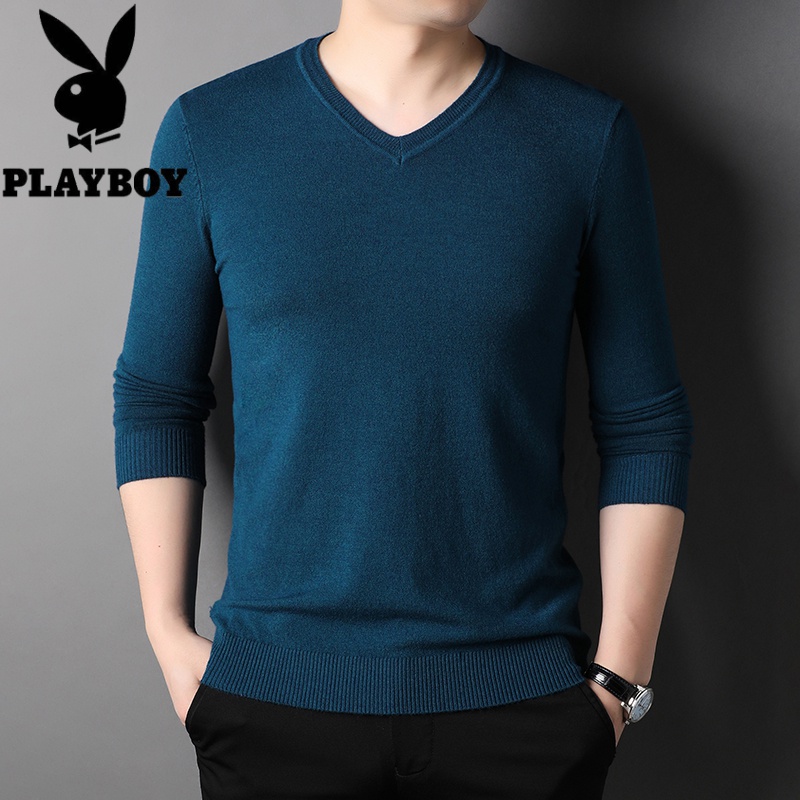 花花公子经典人气春秋薄v领毛衣男长袖男士针织衫休闲男装外穿大码上衣服 2XL 哈青