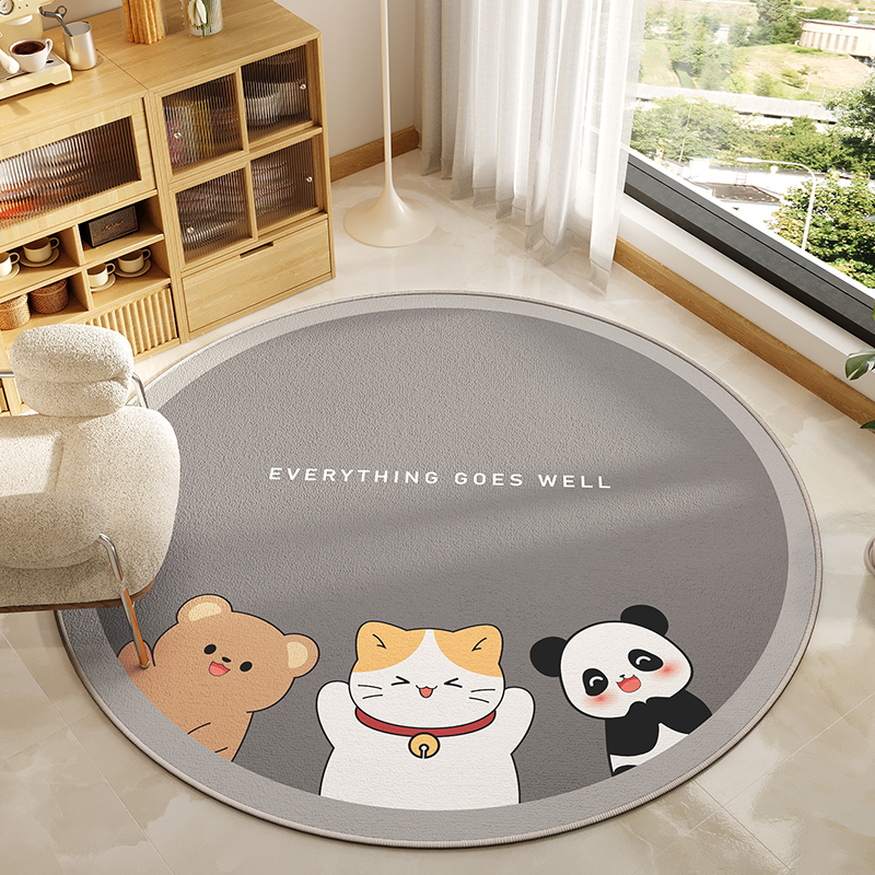 卡通客厅圆形地垫防滑沙发茶几毯儿童房防摔地毯隔音电脑椅垫2556 直径140CM【隔音防滑】【环保无味】 暖洋洋-动物家族