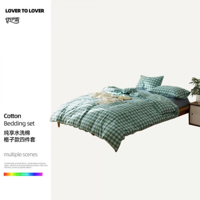 自营 伊伊爱TJ0SXM2301955200*230cm纯爱水洗棉格子款四件套床上套件_720