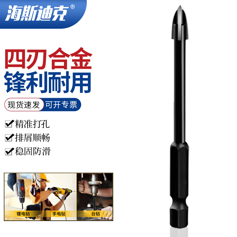 海斯迪克 多功能三角钻头 四刃合金钻头 玻璃陶瓷大理石打孔开孔器 12mm