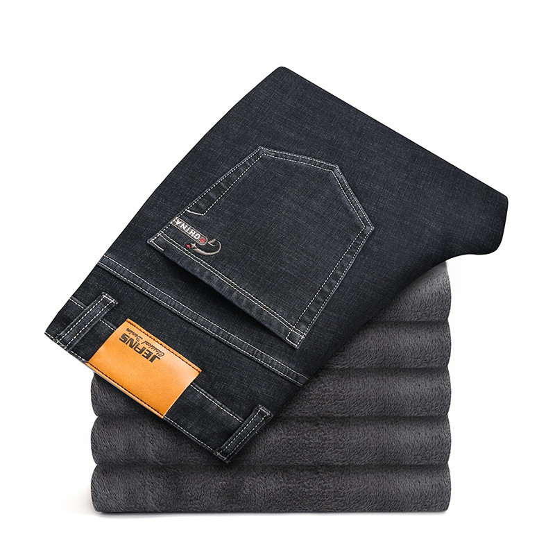 中年牛仔裤加绒加厚柔软保暖裤男士加肥加大码弹力宽松直筒裤jean 42(3尺4)230斤 3095黑色加绒