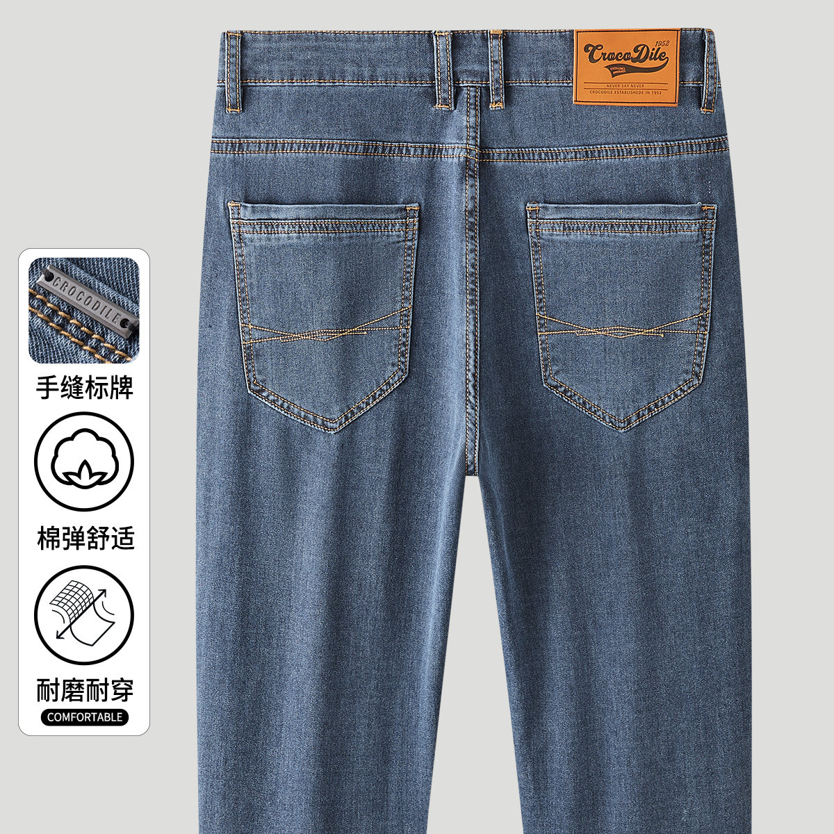 鳄鱼恤CROCODILE 薄款透气休闲直筒长裤牛仔裤男 36 藏青