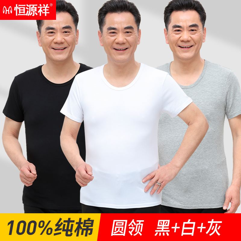 恒源祥中老年人汗衫纯棉短袖夏季全棉白色内衣男士老头衫宽松背中 185(XXXL) 黑色+白色+灰色