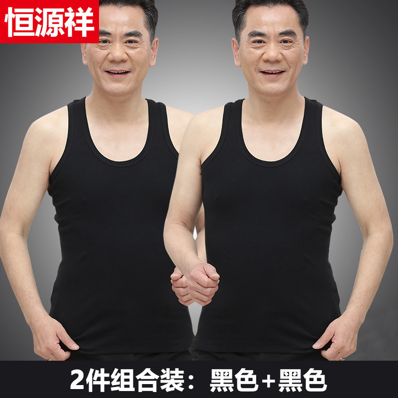 恒源祥男士背心内穿纯棉加大码中老年人夏季全棉宽松老头汗衫爸汗 170(L) 2件黑+黑