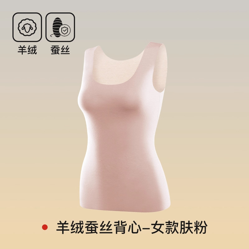 保暖背心女士加绒加厚自发热内衣打底秋冬季德绒吊带文胸内搭外穿 L【推荐105-125斤】 肤粉【羊绒发热蚕丝润肤】