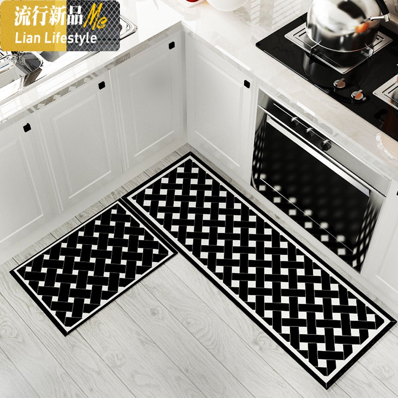 厨房地垫长条防油脚垫口浴室垫进入户地垫卧室客厅垫床边毯三维工匠 40*120cm 时尚黑白交叉