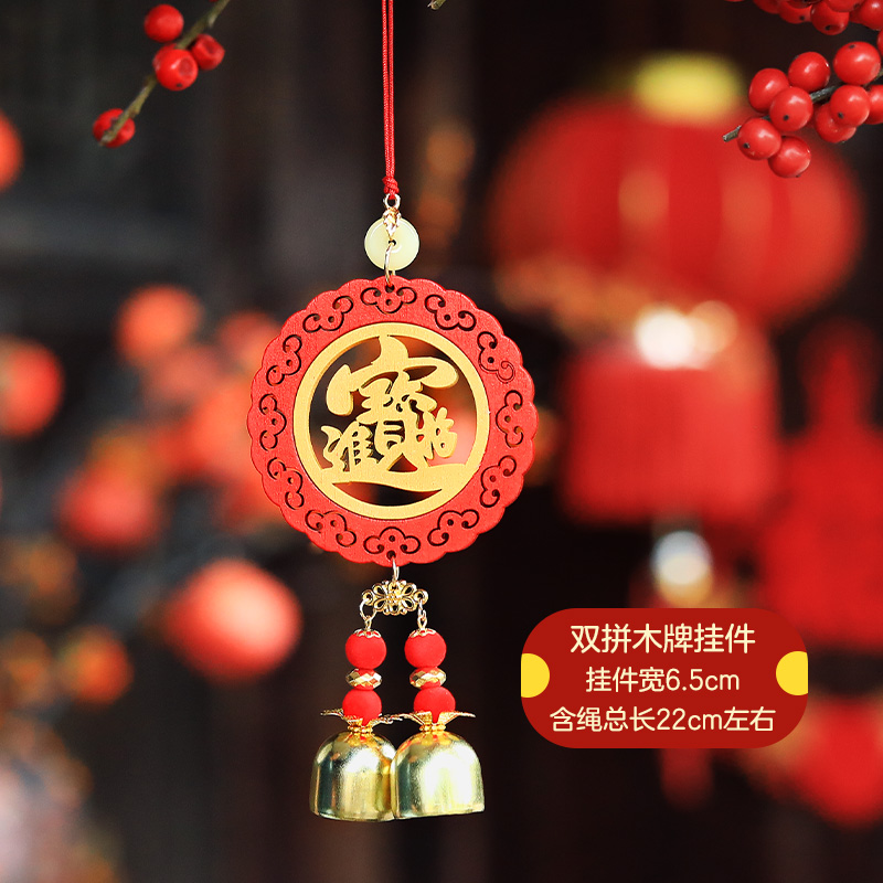 新年挂饰玄关双色木牌挂件 12#双拼木牌(招财进宝)铃铛