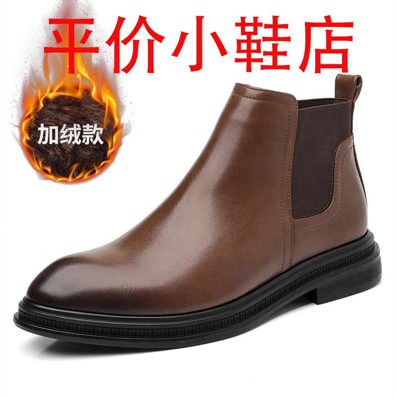 迪罗尼卡48码英伦风懒人一脚蹬大码切尔西靴高级感烟筒加绒靴子马丁靴高帮 棕色加绒 42码