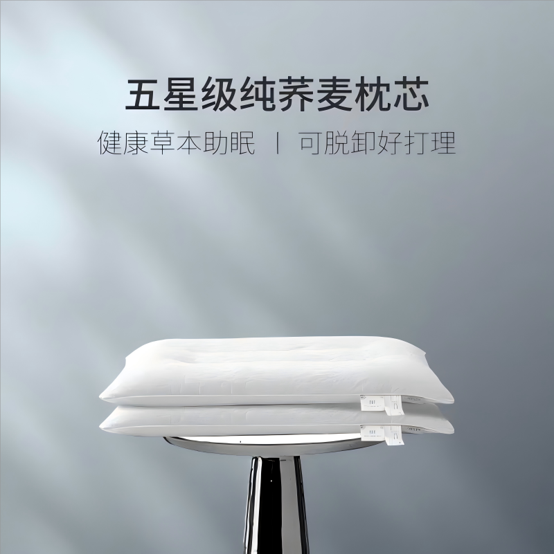 思美格五星级酒店护颈枕芯全棉成人荞麦枕头74*48cm 送长绒棉枕套