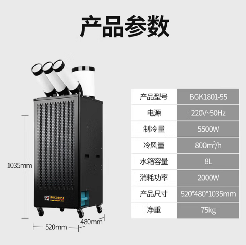 宝工电器(BGE) 工业移动冷气机压缩机制冷机流水线高温岗位机房厂房大风量冷风机 大2匹 5500W三管 机械款