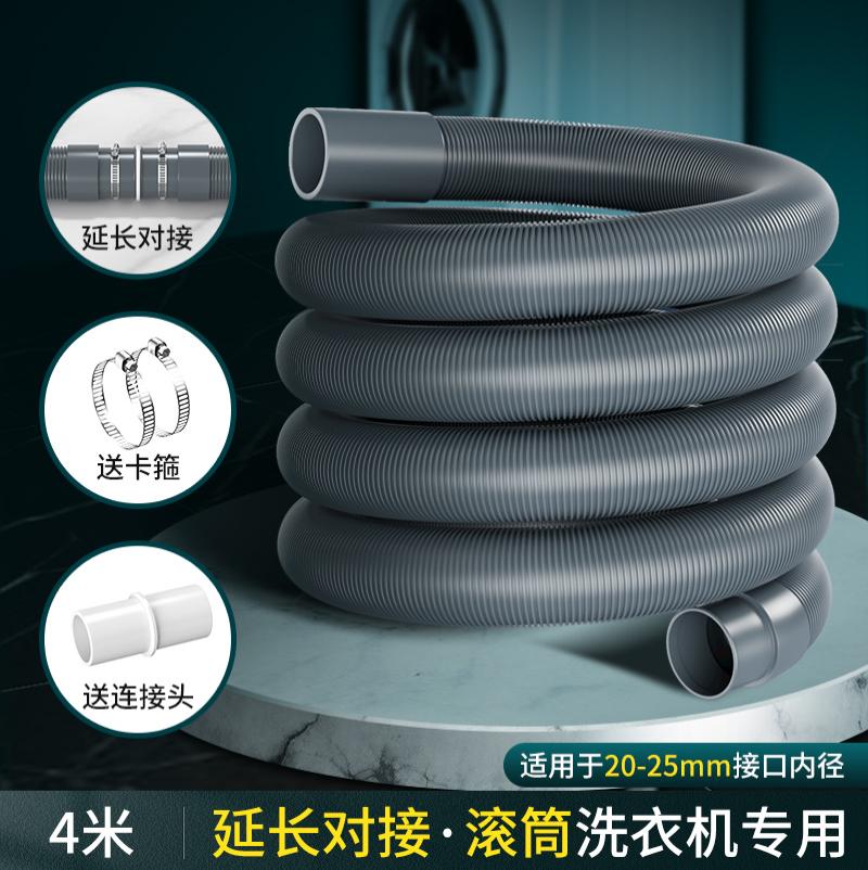 全自动滚筒洗衣机排水管延长管下水管加长接头通用对接出放水配件- 4米·延长对接【送2个不锈钢卡箍+连接头】--