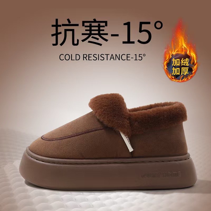2024新款棉拖鞋女士冬季情侣防滑保暖翻领厚底室内家居包跟雪地靴-24408 40-41【适合39-40码】 深咖