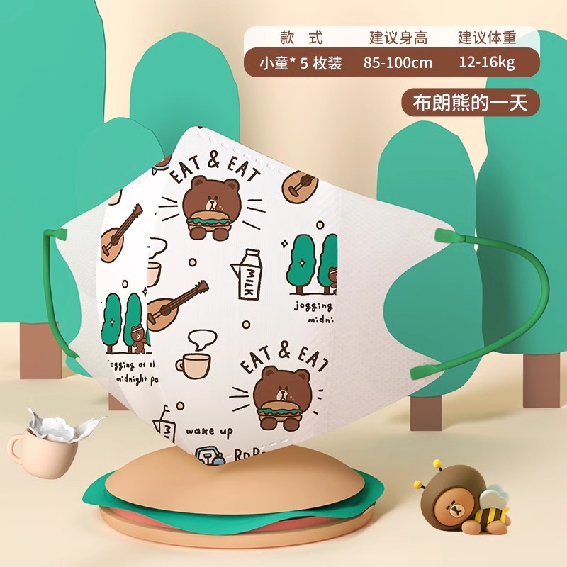 绿鼻子3d立体口耳罩 1-3岁LINE布朗熊的一天-5枚