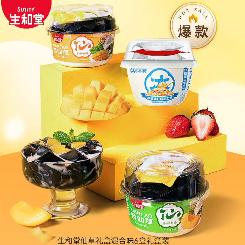 生和堂仙草礼盒混合味6盒礼盒装(280克红糖味3杯+246g黄桃味3杯)