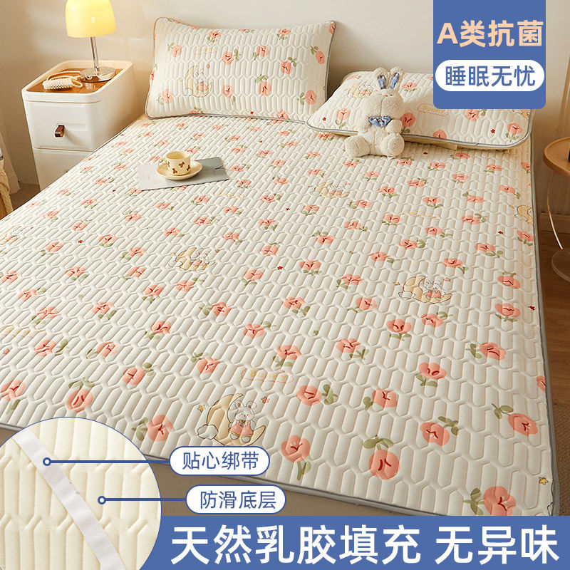 南极人夏季冰丝乳胶凉席三件套宿舍学生单人家用折叠可水洗空调宿 90x200cm凉席+枕套单只 花朵粉兔加厚乳胶加倍凉感