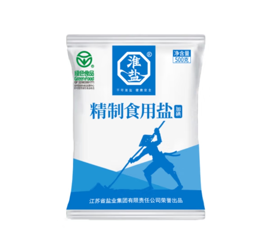 苏宁宜品淮盐精制食用盐500g加碘绿色食品家用食盐