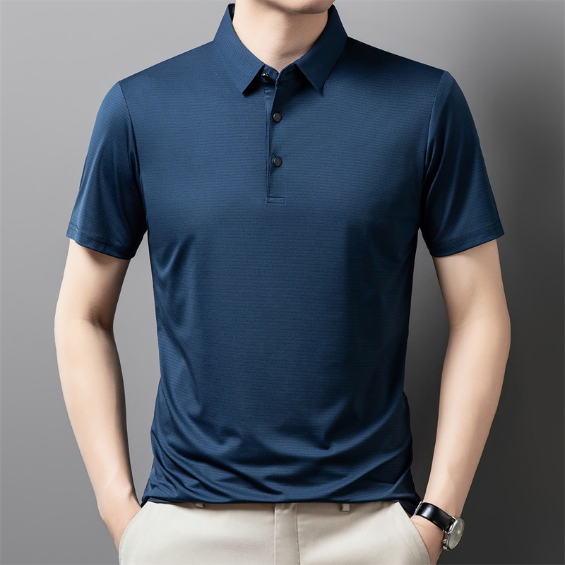 自营 2024夏季短袖冰丝polo衫中年男士商务休闲翻领t恤男衬衣领爸爸装 4XL 藏青
