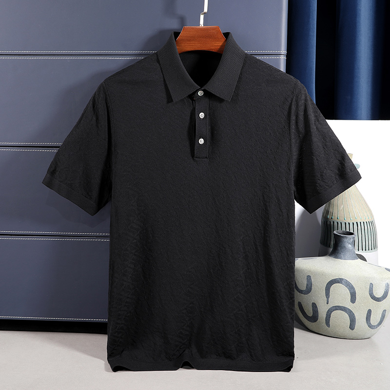 桑蚕丝男翻领冰丝棉短袖t恤2023夏季商务休闲男装针织半袖polo衫 180/XL 碳金黑