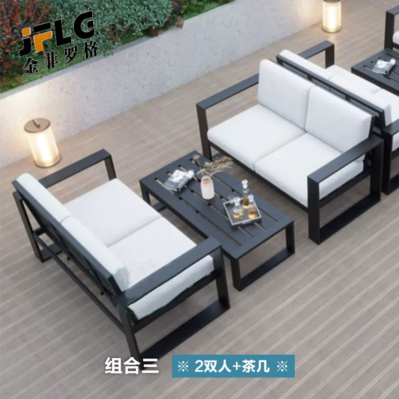 苏宁 金菲罗格 室外家具铝合金户外防晒防水沙发 双人+茶几组合/80高