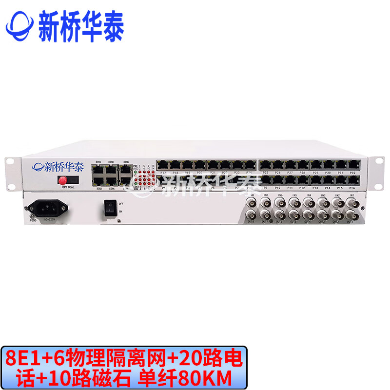 新桥华泰 XQ-240FQ20P10C-80A综合多业务光端机8E1+6路物理隔离网+20路电话+10路磁石单纤80km