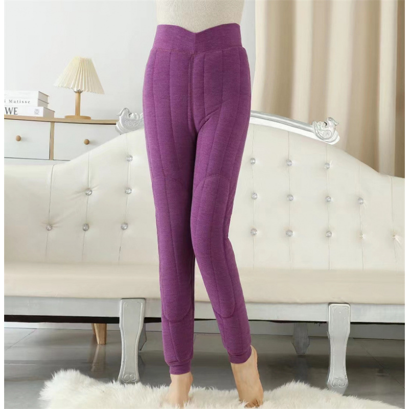 奶奶冬装加绒加厚保暖裤子妈妈装高腰打底裤女老年人护膝弹力棉裤_1 3XL(建议120-140斤) 紫色【加绒加厚】