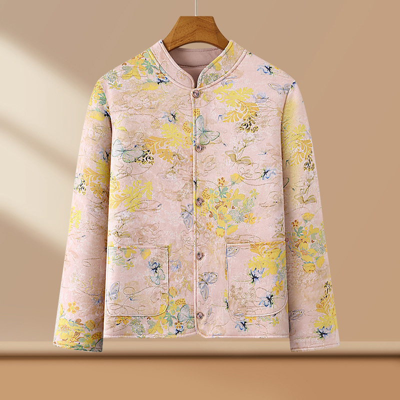 古风妈妈装棉衣外套时尚靓丽女装中老年人国风衣服冬装棉服年 2XL(建议80-105斤) 粉色棉衣