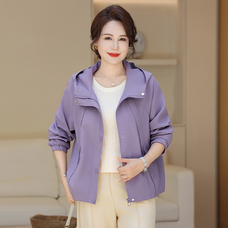 中老年妈妈装外套女时尚女装大码宽松衣服连帽中年人开衫显瘦女装 3XL(建议125-140斤) 紫色外套