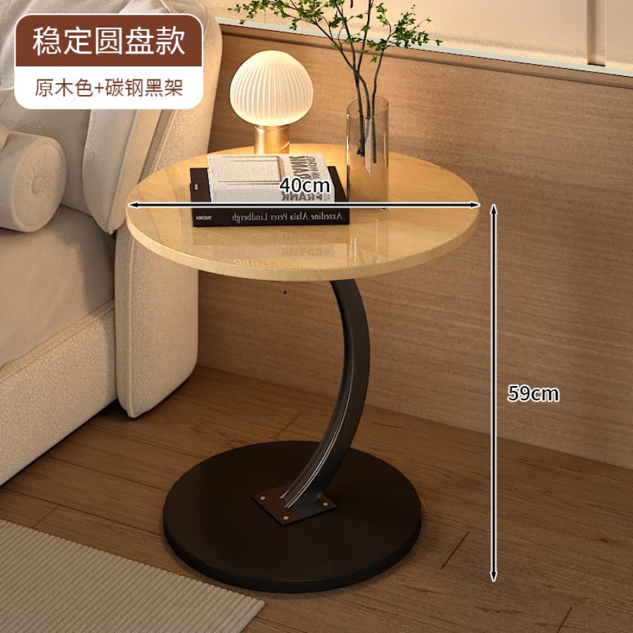 龙云天盾沙发边几边柜轻奢高级感小茶几移动床头床边置物架迷你阳台小桌子 黑架原木色【法式小桌】大号40cm