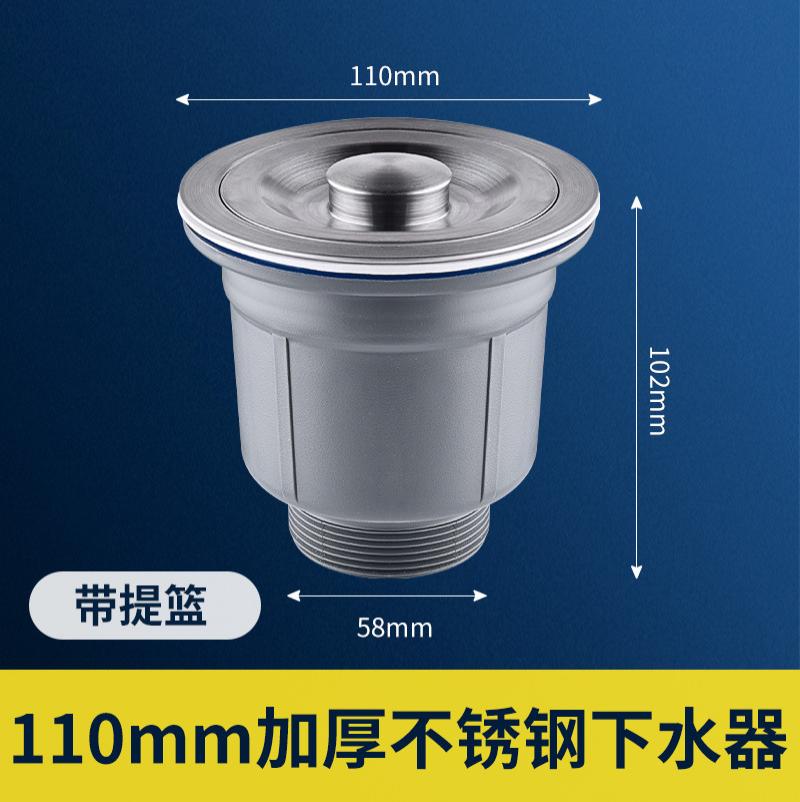 自营 厨房洗菜盆不锈钢下水器水槽洗碗池下水管套装漏水塞子排水管-110mm加厚不锈钢下水器(仅能与本店产品匹配)【带提篮】