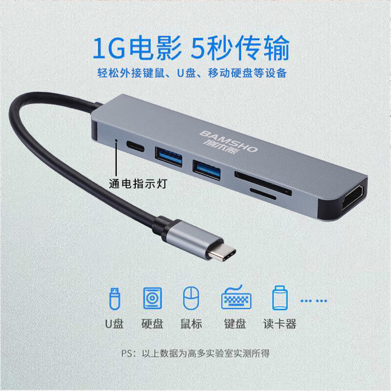 捌木熊 GJC-40013 扩展坞(集线器)6合一 115*30*10mm 银灰色 企业保密款(单位:个)