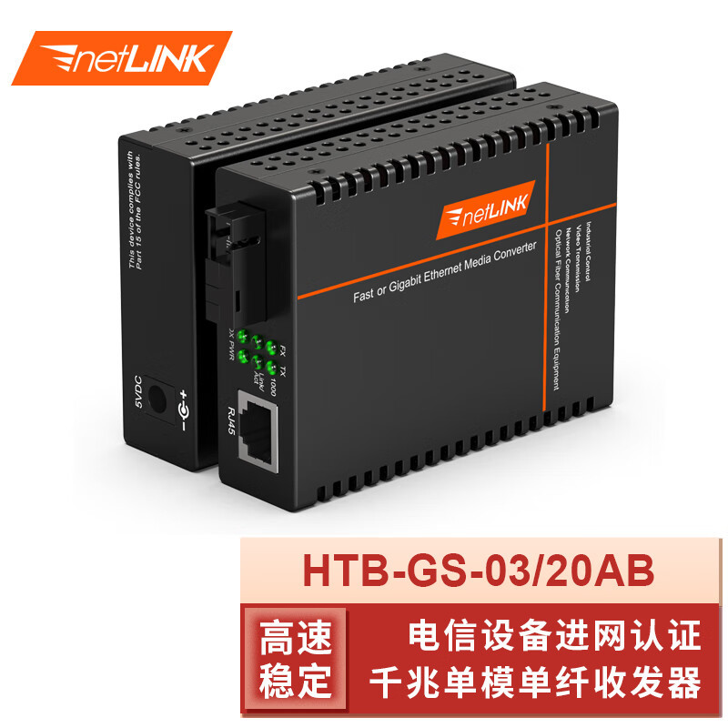 netLINK HTB-GS-03/20AB 光纤收发器千兆单模单纤 工程电信级光电转换器0-20公里 DC5V 一对