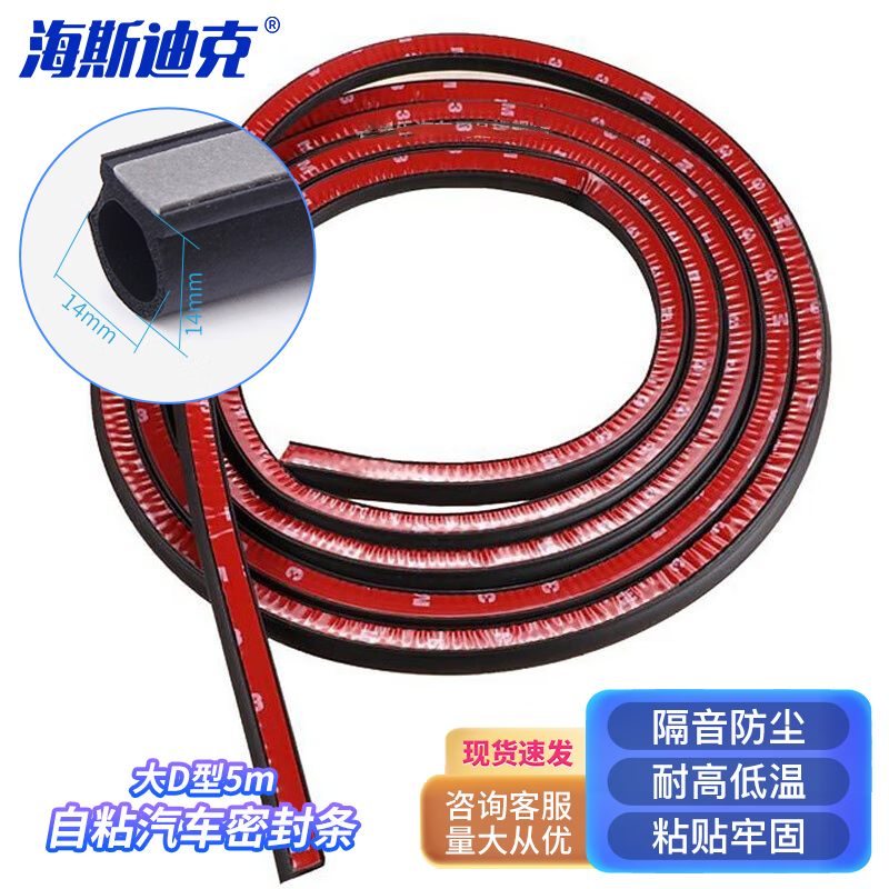 海斯迪克 HKDP-198 通用型三元乙丙橡胶条 隔音防尘自粘汽车密封条 大D型30m