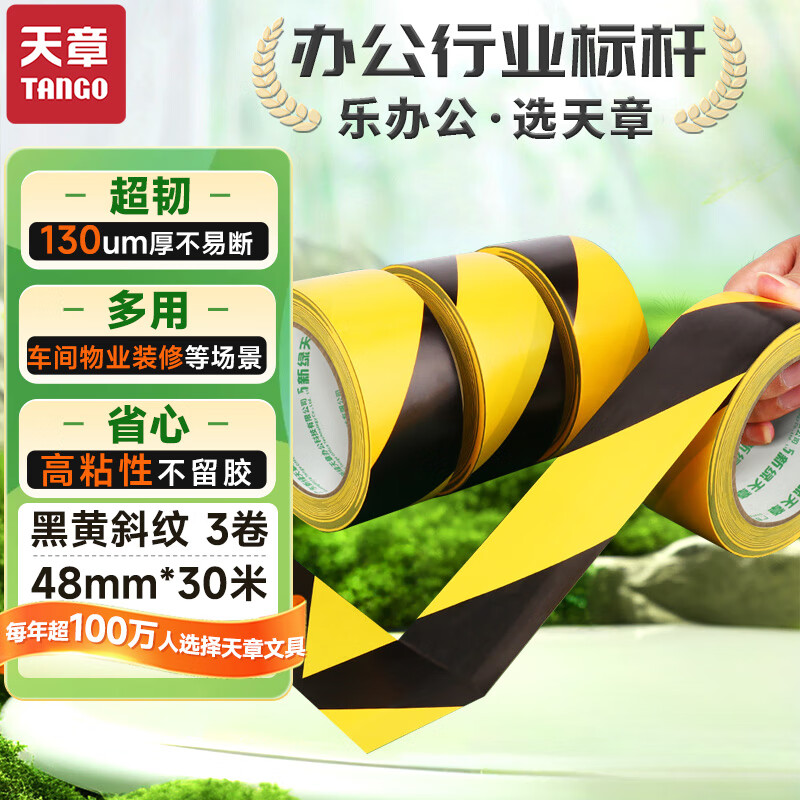新绿天章0315 警示胶带黑黄色 48mm*30米/卷 3卷/筒(筒) BH