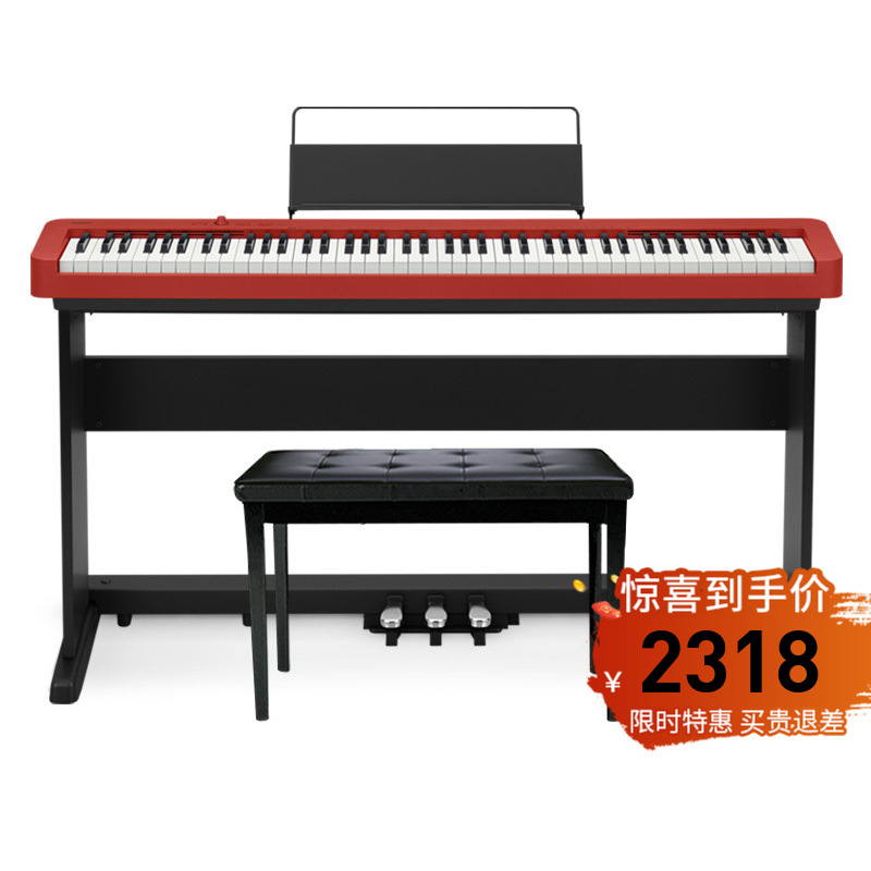 Casio卡西欧乐器旗舰店EP-S130智能专业家用成人儿童初学者幼师教学便携电子数码 电钢琴 EP-S130红色单机+U琴架+三踏板+琴凳