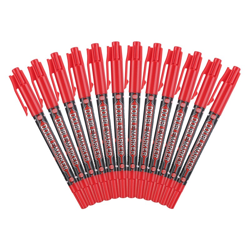 晨光(M&G)办公记号笔红色油性笔防水不易掉色物流笔双头记号笔 MG2130C 红 12支/盒