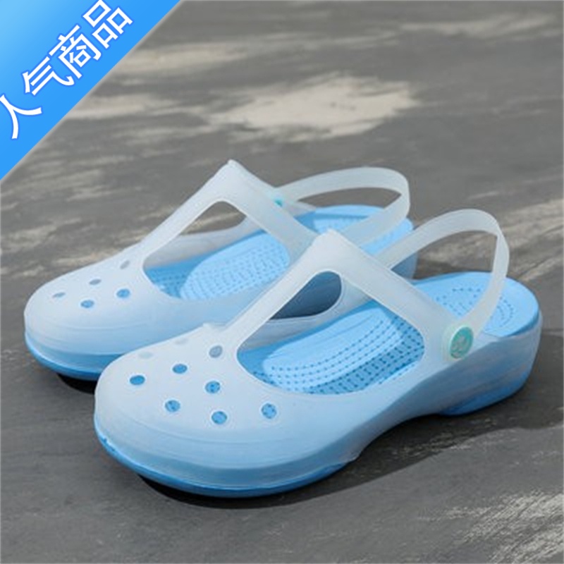 SUNTEK夏季新款护士鞋白色洞洞鞋女鞋软底凉鞋女果冻鞋沙滩鞋软底凉拖鞋 玛丽珍-天蓝 37