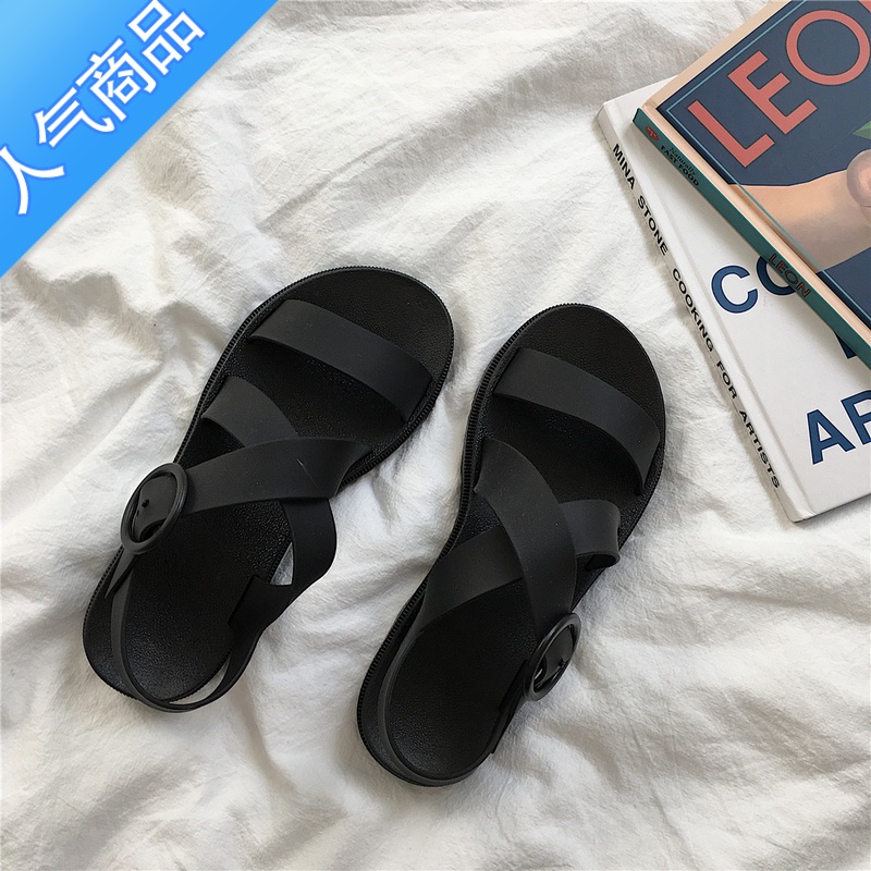 SUNTEK韩国ins凉鞋2023女春夏新款交叉P露趾百搭学生个性休闲鞋厚底2 黑色凉鞋偏小 38
